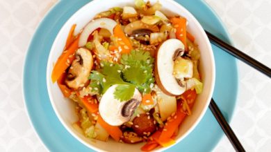 Wok à l’Asiatique, pousses de bambou, sauce soja et sésame