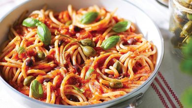Spaghettonis aux câprons, parmesan & basilic Sauce Sicilienne