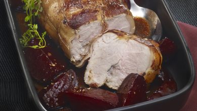 Rôti de veau, betteraves confites au vinaigre de framboise