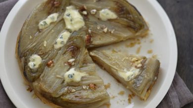 Tatin d’endives au Bresse Bleu et aux noisettes