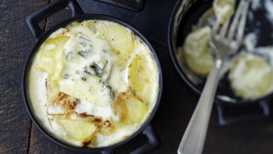 Mini cocottes de rattes gratinées au jambon et au Bresse Bleu