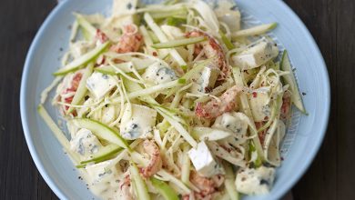 Coleslaw à la pomme verte, écrevisse et Bresse Bleu