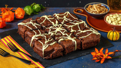 Brownie toile d’araignée au chocolat blanc et noisettes