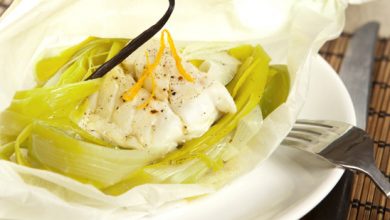 Papillote de poireaux et cabillaud à la vanille et à l’orange