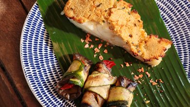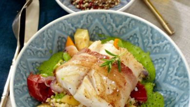 Cabillaud en croûte de moutarde French’s® Honey, légumes grillées