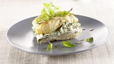 Cabillaud, fenouil bulbe confit, crème de moules au lait de coco et pousses d’épinards