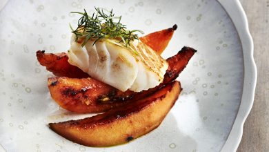 Cabillaud demi-sel laqué au soja, melon du Haut-Poitou à la plancha, miel et citron jaune