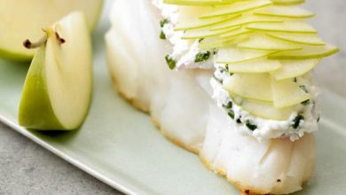 Cabillaud en croûte de noisettes, Abricots de nos Régions rôtis et cerfeuil