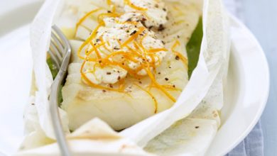 Papillote de cabillaud, Chavignol Fondant et Julienne de légumes
