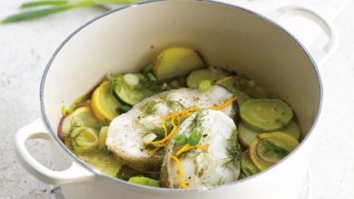 Dos de Skrei de Norvège à la vapeur de citron vert, coques et pomme de terre fondantes
