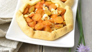 Tartelettes de carottes, oignons confits et feta