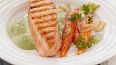 Pavé de Saumon Écossais Label Rouge à l’émulsion de cresson, carottes à l’ail