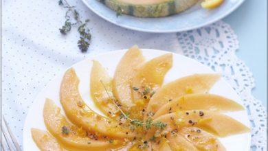 Carpaccio de Melon Sauce Vinaigrette Agrumes et Cacahuètes Concassées