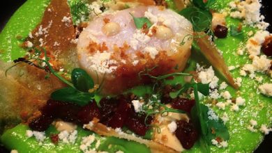 Riz à poêler chorizo et tomates séchées – Noix de St-Jacques sauce poivron rouge