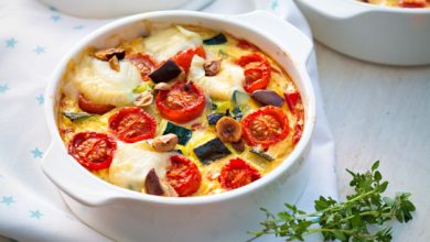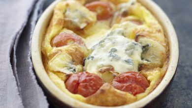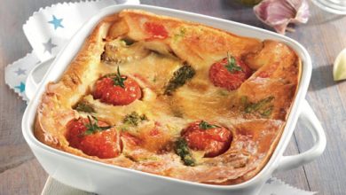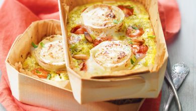 Clafoutis de légumes rôtis, noisettes et crottin de Chavignol