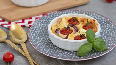 Petits clafoutis aux tomates cerise, pesto et bûche de chèvre Chavroux®