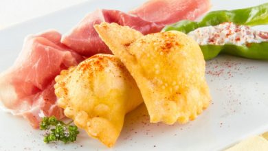Raviolis frits farcis au Jambon de Parme et petits piments doux fourrés à la ricotta