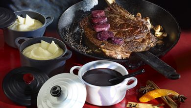 Côte de bœuf, sauce épicée et purée à la Tome fraîche