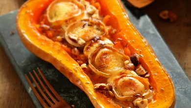 Courge butternut rôtie à l’Optima 3 Huiles Tramier, au chèvre, au mascarpone et aux noisettes