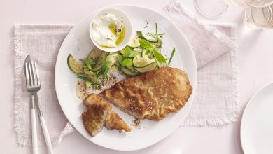 Escalope de veau panée au parmesan, citron et courgette saveur menthe