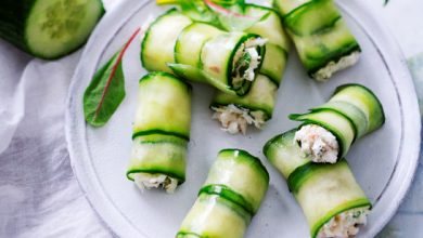 Rouleau de concombre au crabe menthe, fromage frais, noix