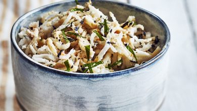 Médaillons de riz noir Vénéré aux crevettes et au crabe