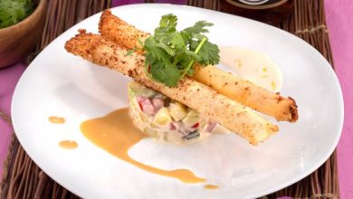 Allumettes aux crevettes et fromage sur tartare de légumes