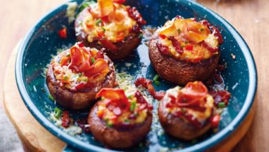 Champignons farcis d’Emmentaler AOP suisse jambon et lardons croustillants