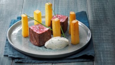 Filet de bœuf et Pomme pont-neuf avec ses dips de St Môret® aux condiments