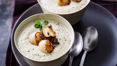Crème d’endive aux noix de St Jacques et aux champignons