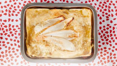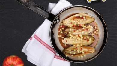 Tatin d’endives au Bresse Bleu et aux noisettes