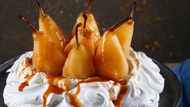 Pavlova de poires et caramel à la fleur de sel de Guérande le Guérandais