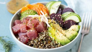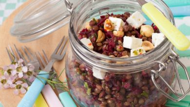 Salade de lentilles vertes du Puy, dés de féta et vinaigrette au miel