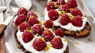 Mini pizzas mascarpone citron vert framboises et copeaux de «chocolat amande»
