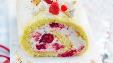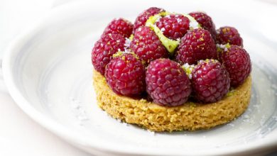 Baba de coquilles Saint-Jacques aux framboises en chaud froid, crème Isigny Ste-Mère au citron et estragon