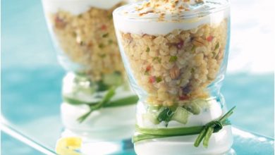 Salade de Boulgour Gourmand au Concombre sur Lit de Fromage Blanc
