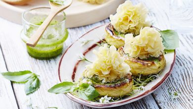 Fonds d’artichauts au pesto de Tête de Moine AOP et fleurs d’ail