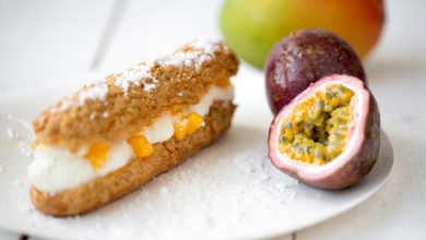 Pavlova aux fruits exotiques et chantilly au yuzu