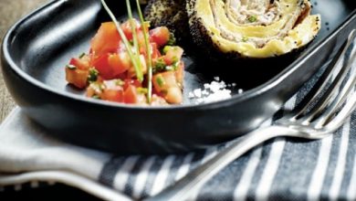 Haricots verts et brousse parfumée aux épices sur galette de sarrasin