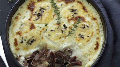Gratin de pommes de terre et confit de canard au Bresse Bleu Suprême