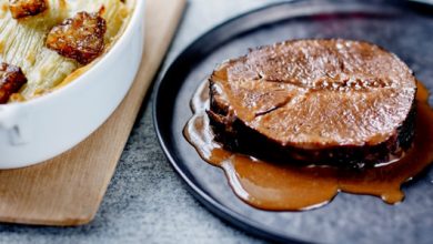 Paleron de Bœuf de Chalosse braisé au vin de Tursan, Gratin de Cardon à la moelle