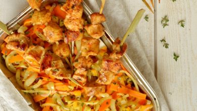 Brochettes de poulet au paprika sur gratin de Légumes d’Antan Bonduelle