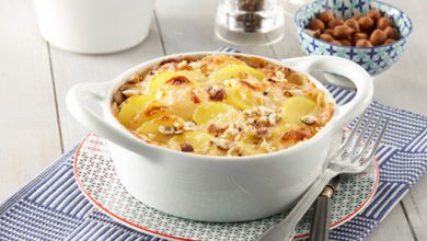 Gratin de Pompadour Label Rouge à la crème de Maroilles et aux noisettes