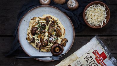 Polenta crémeuse au Gruyère France IGP râpé Entremont et champignons poêlés