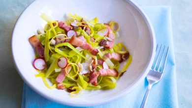 Salade gourmande lardons, poireaux et radis