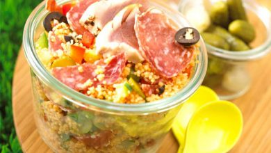 Taboulé de saucisson sec cornichons olives thon