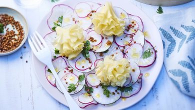 Carpaccio de radis au kasha et à la Tête de Moine AOP