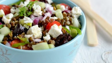 Salade de lentilles vertes du Puy, dés de féta et vinaigrette au miel