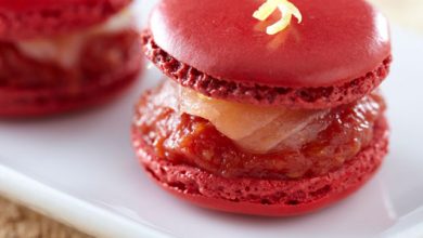 Macaron rouge à la pulpe de tomates et au saumon fumé