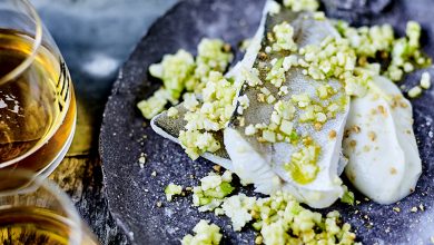 Merlan Grillé aux Petits Légumes, Crème d’Ail Rose